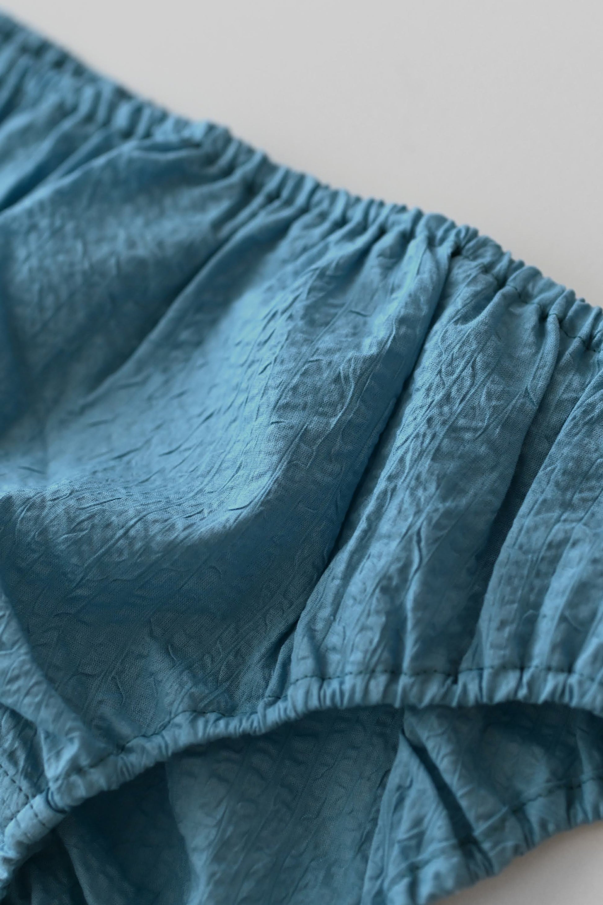 薄手のコットン100%のサッカー生地は、肌にはりつかず、空気をまとったような軽やかさ。