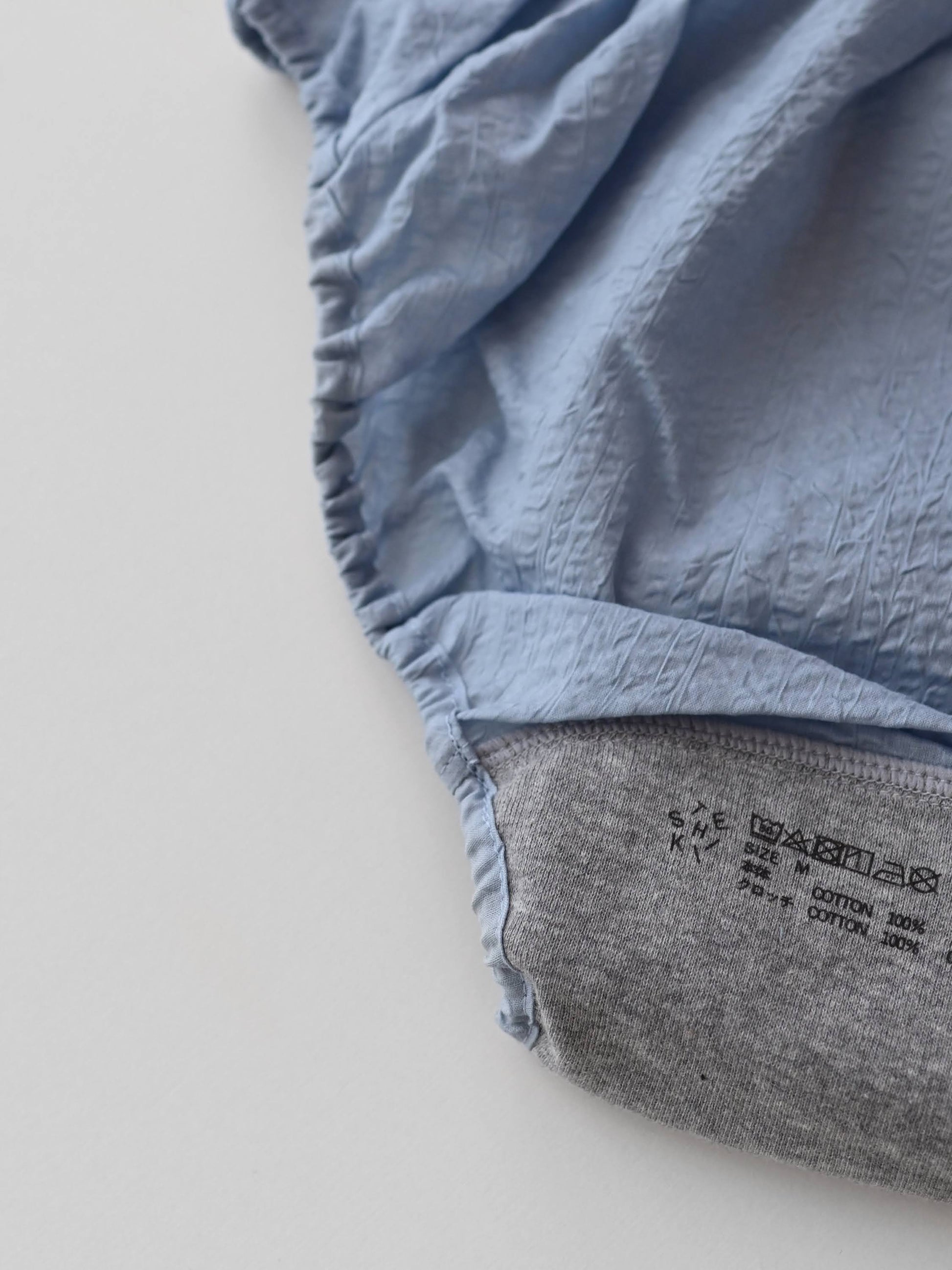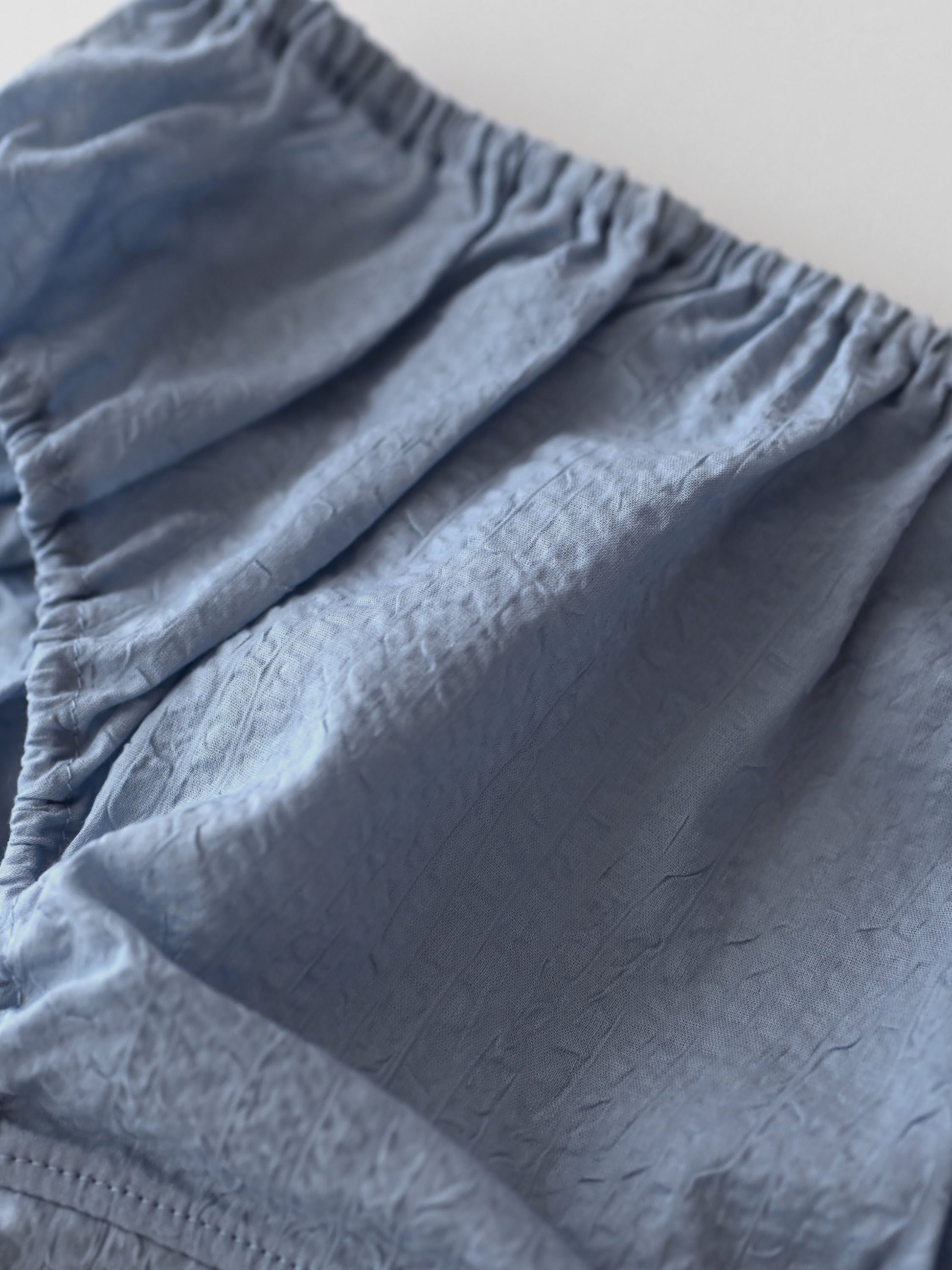 薄手のコットン100%のサッカー生地は、肌にはりつかず、空気をまとったような軽やかさ。