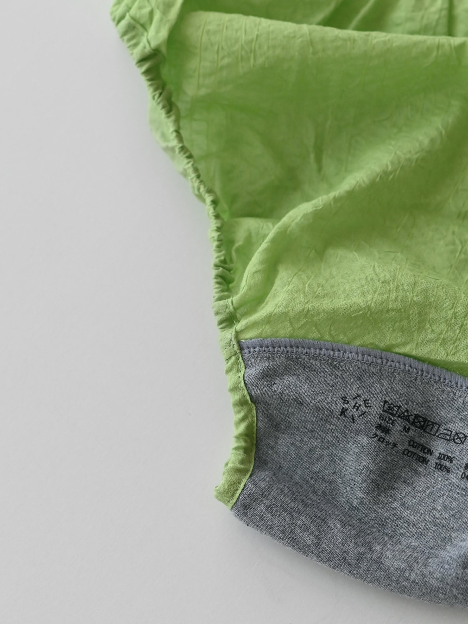 薄手のコットン100%のサッカー生地は、肌にはりつかず、空気をまとったような軽やかさ。