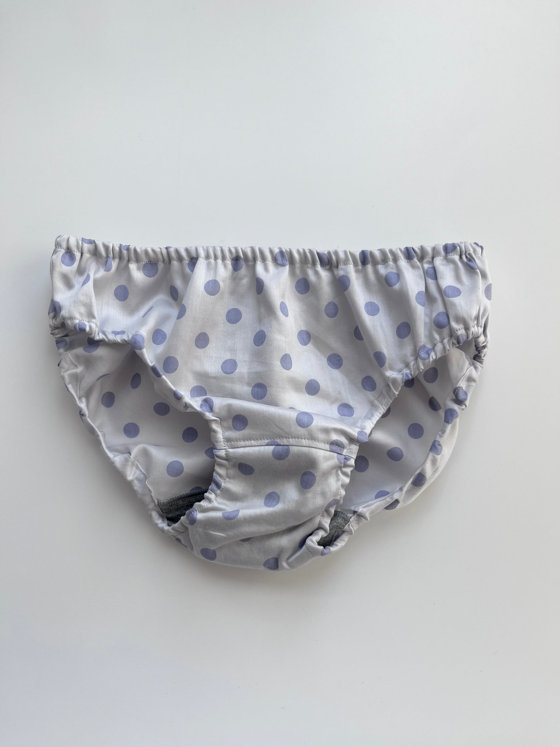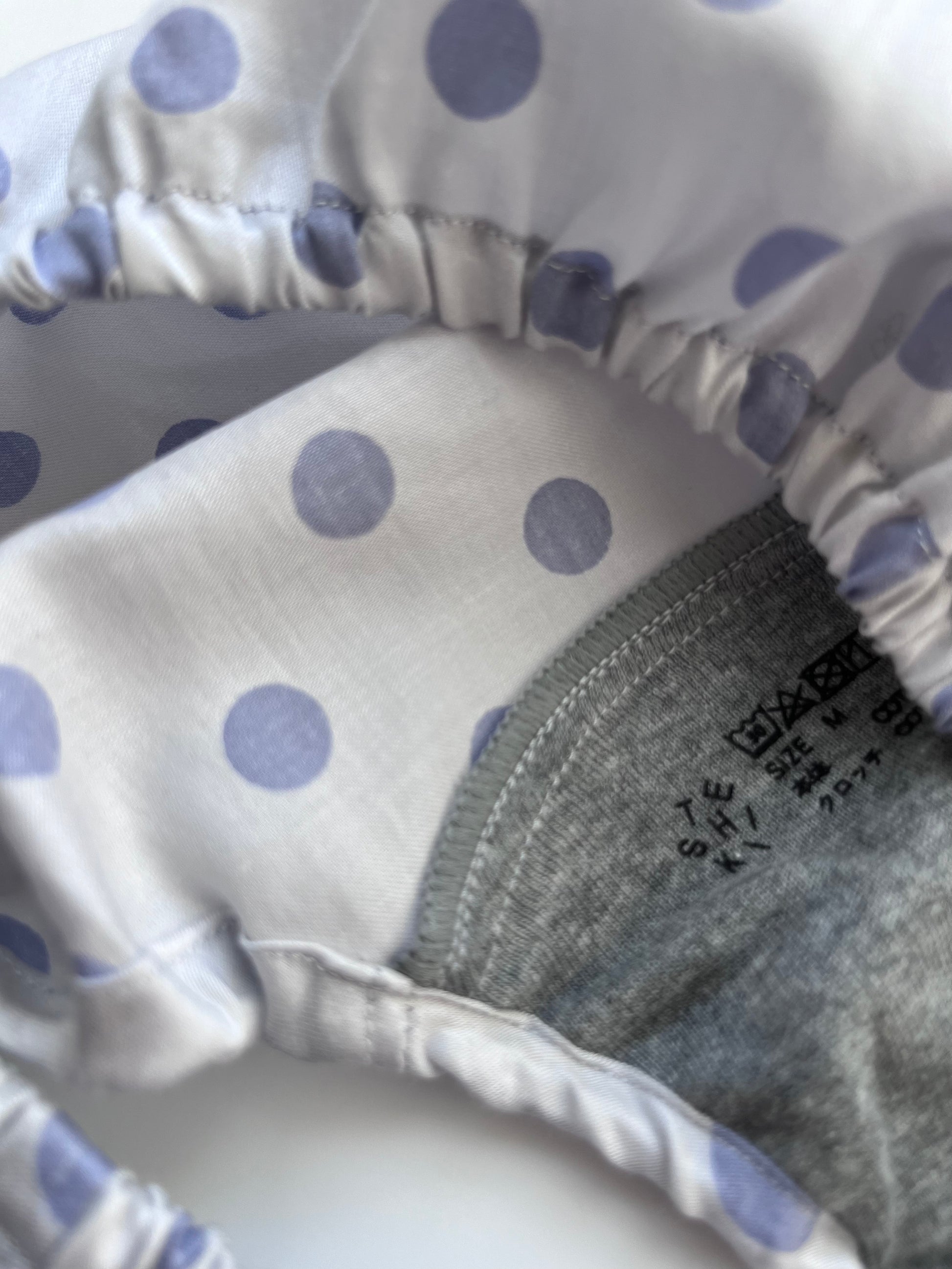 薄いグレー地にブルー 光沢のある水玉