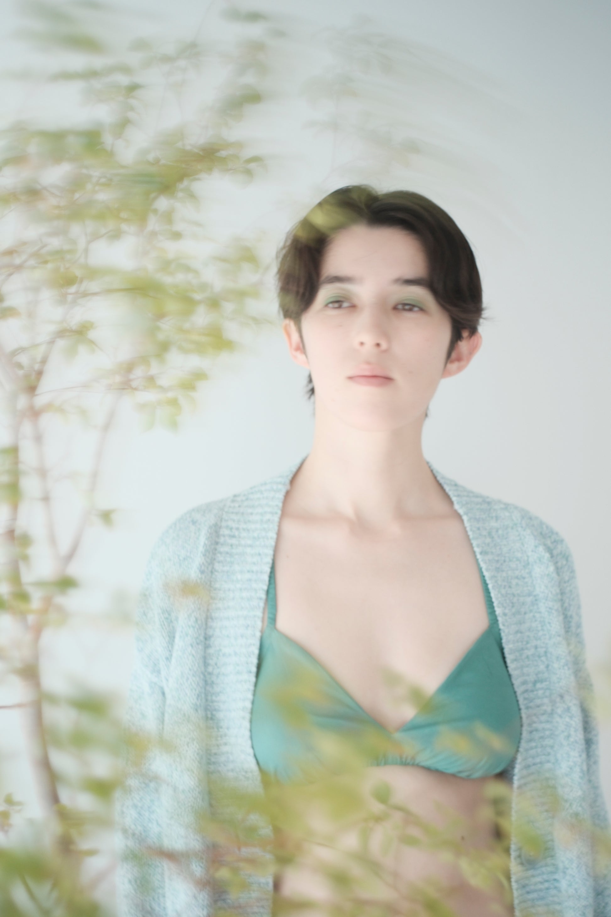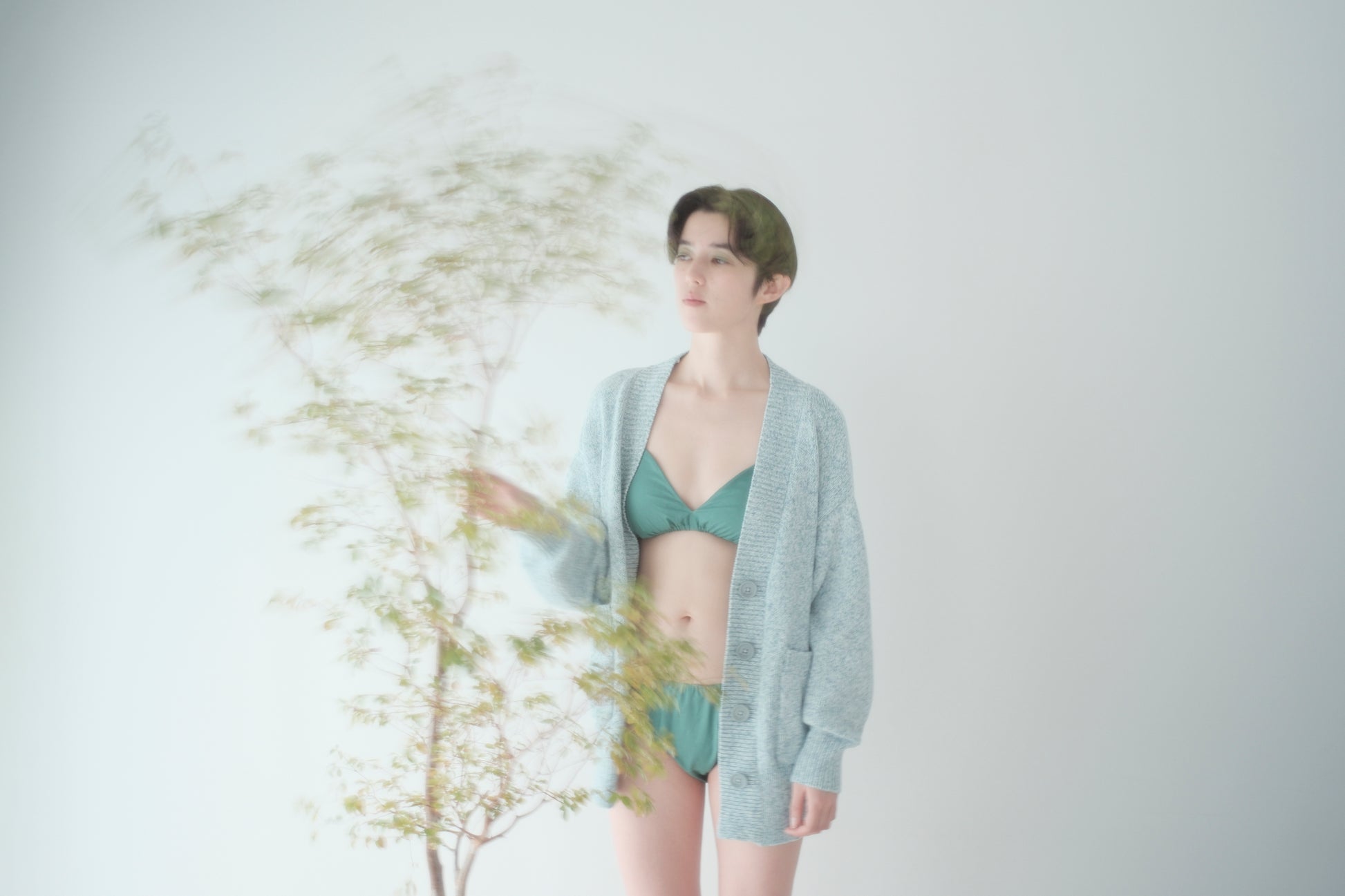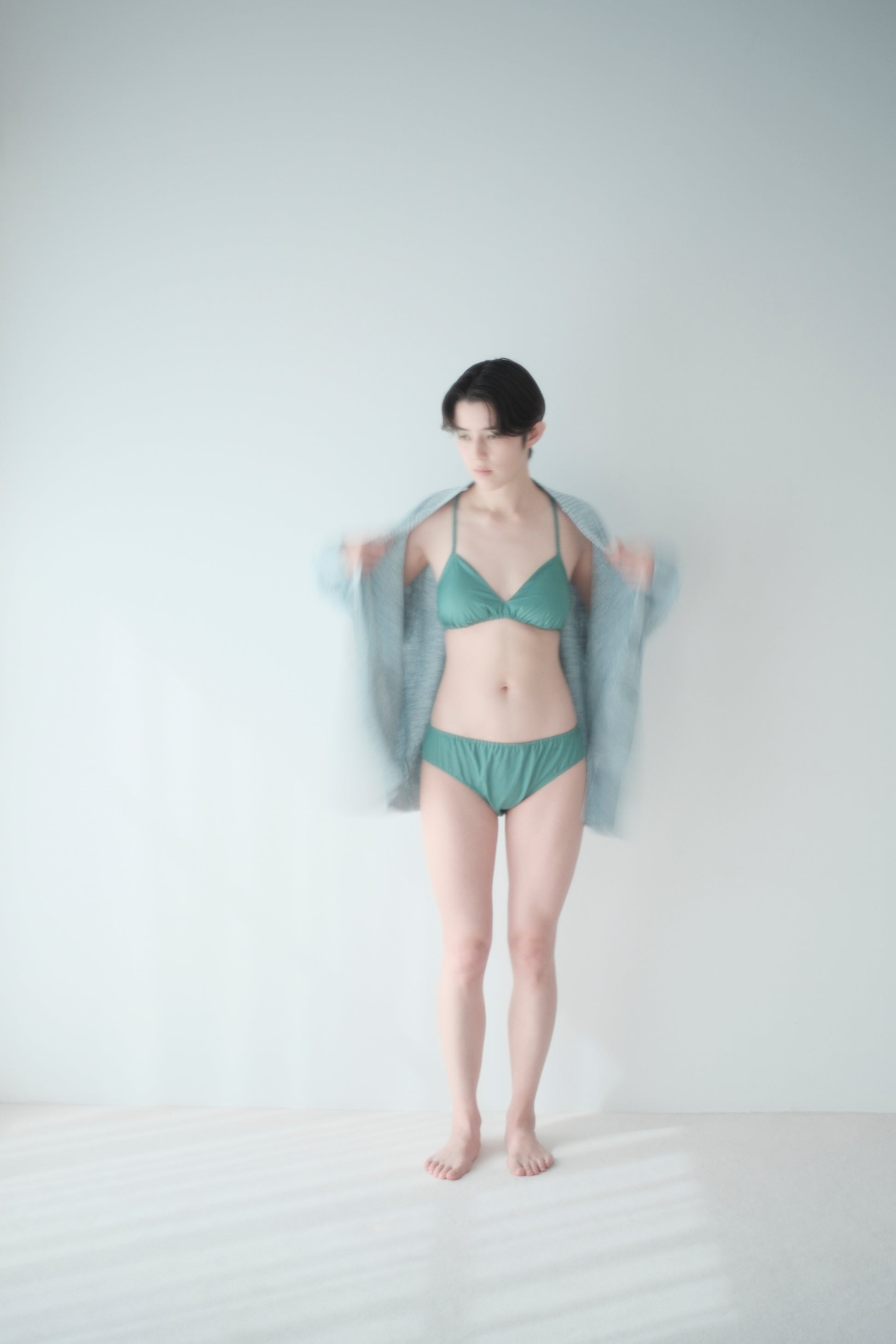 2023S/Sの新作です。青みのある薄い緑色、春の光の中で輝く新緑色のBRAとPANTS。