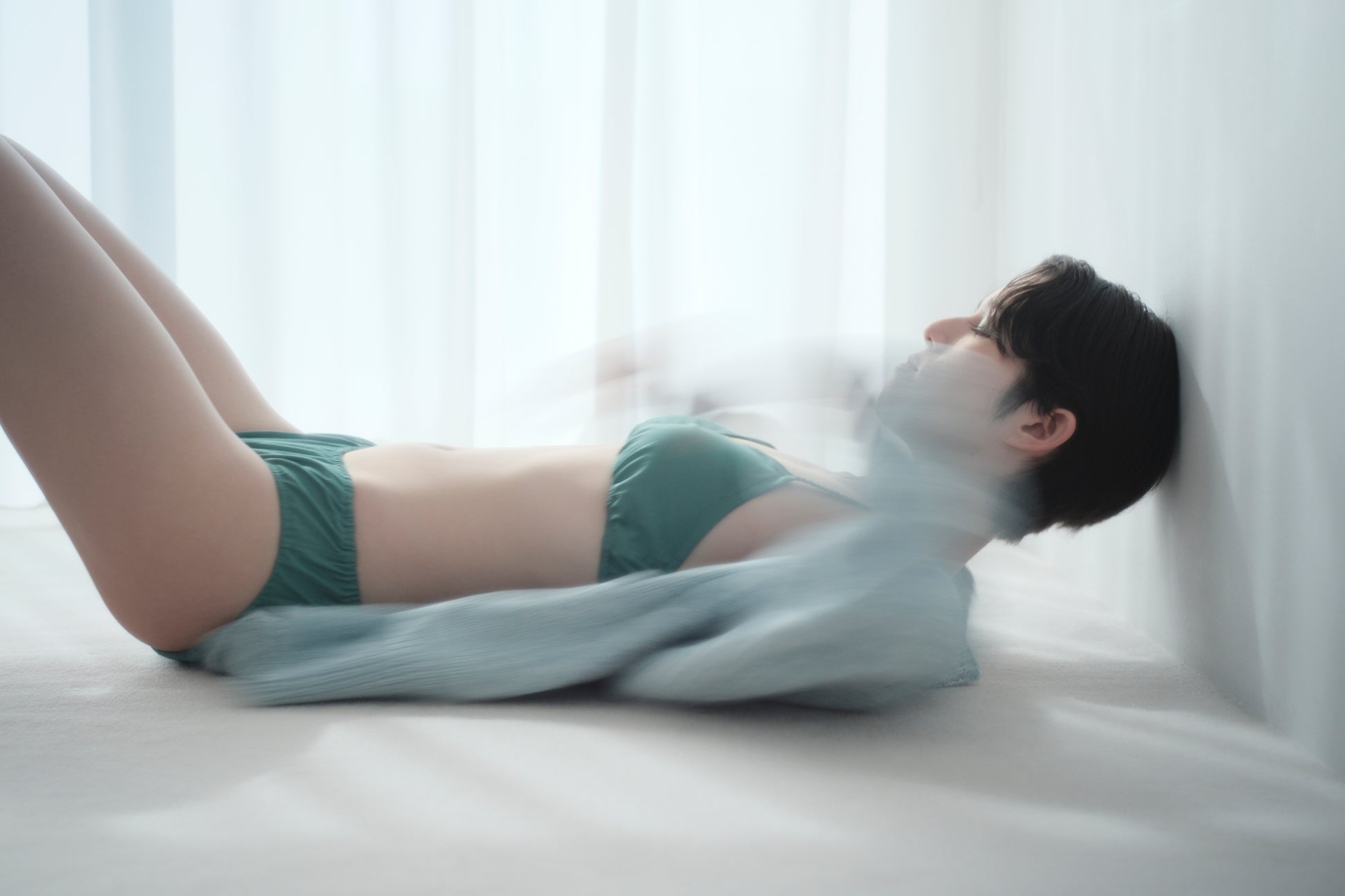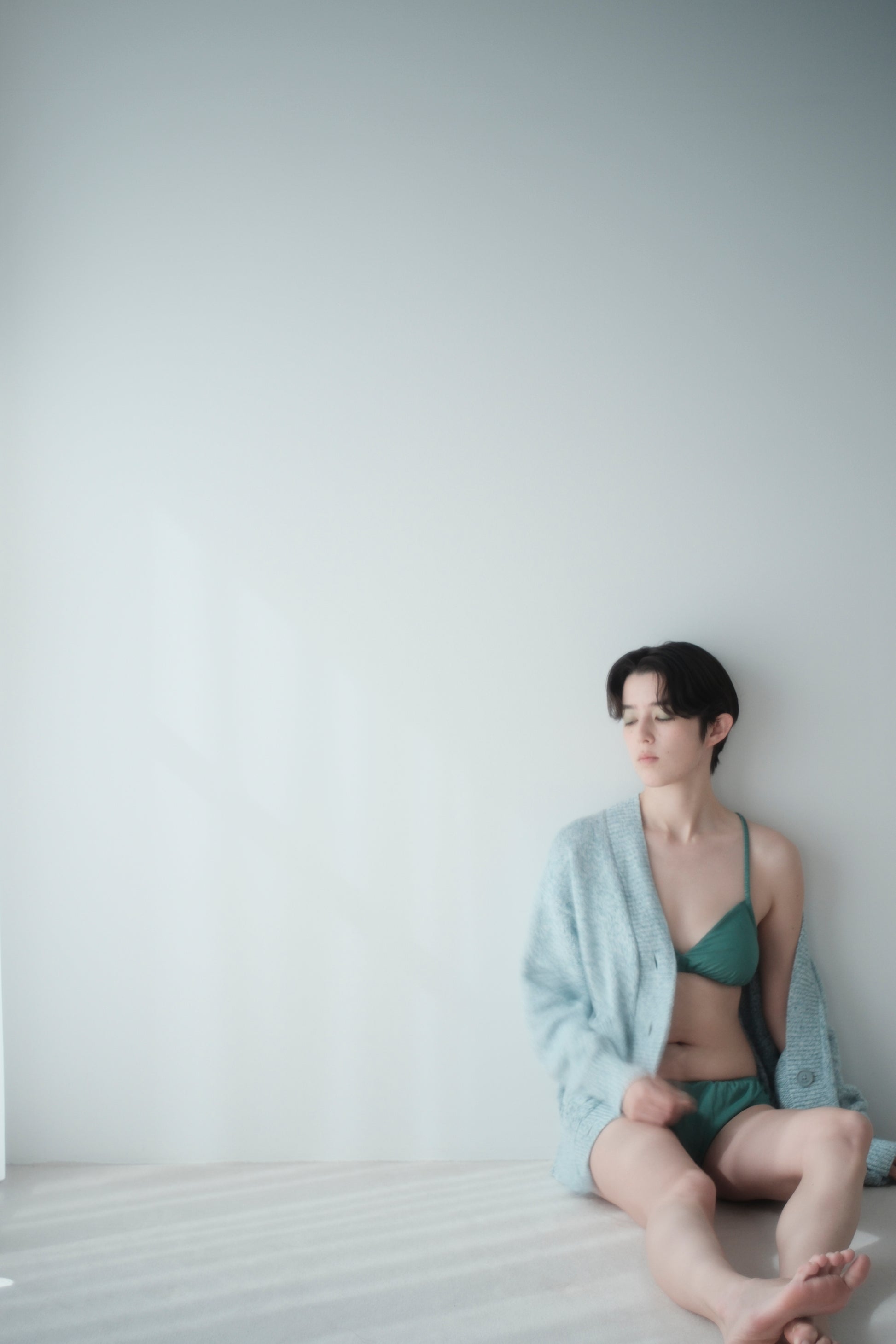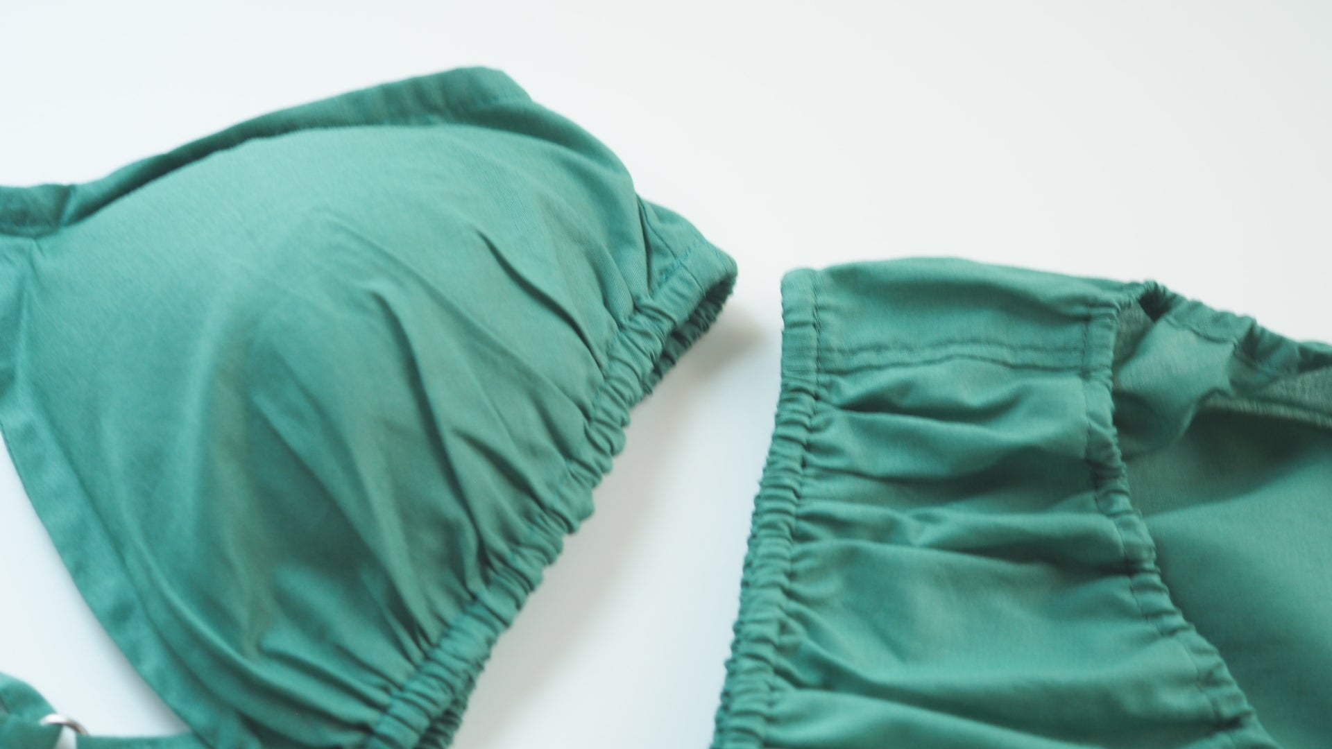 2023S/Sの新作です。青みのある薄い緑色、春の光の中で輝く新緑色のBRAとPANTS。