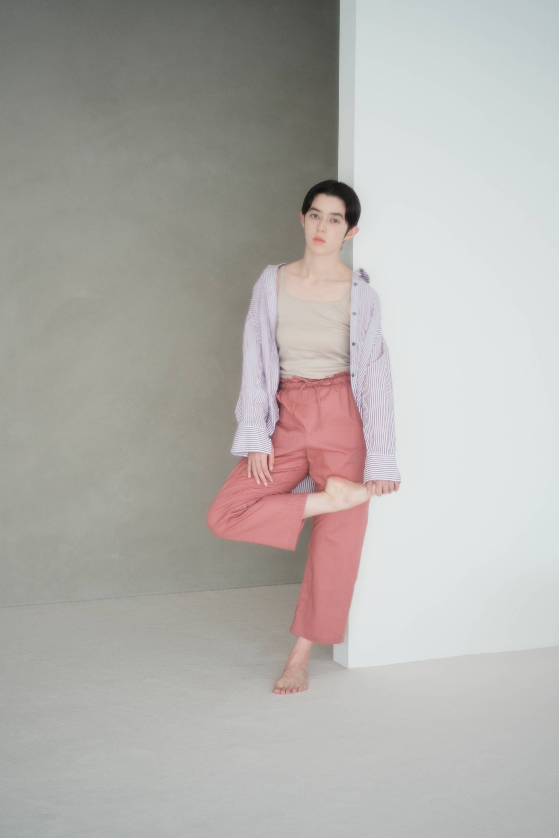 イギリス圏の伝統色、オールドローズ(くすみピンク)のROOM PANTS。
