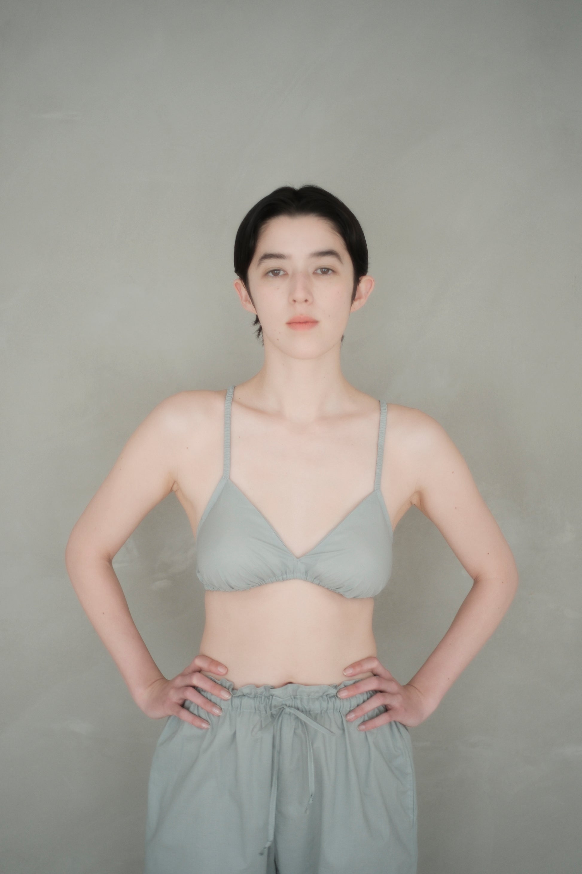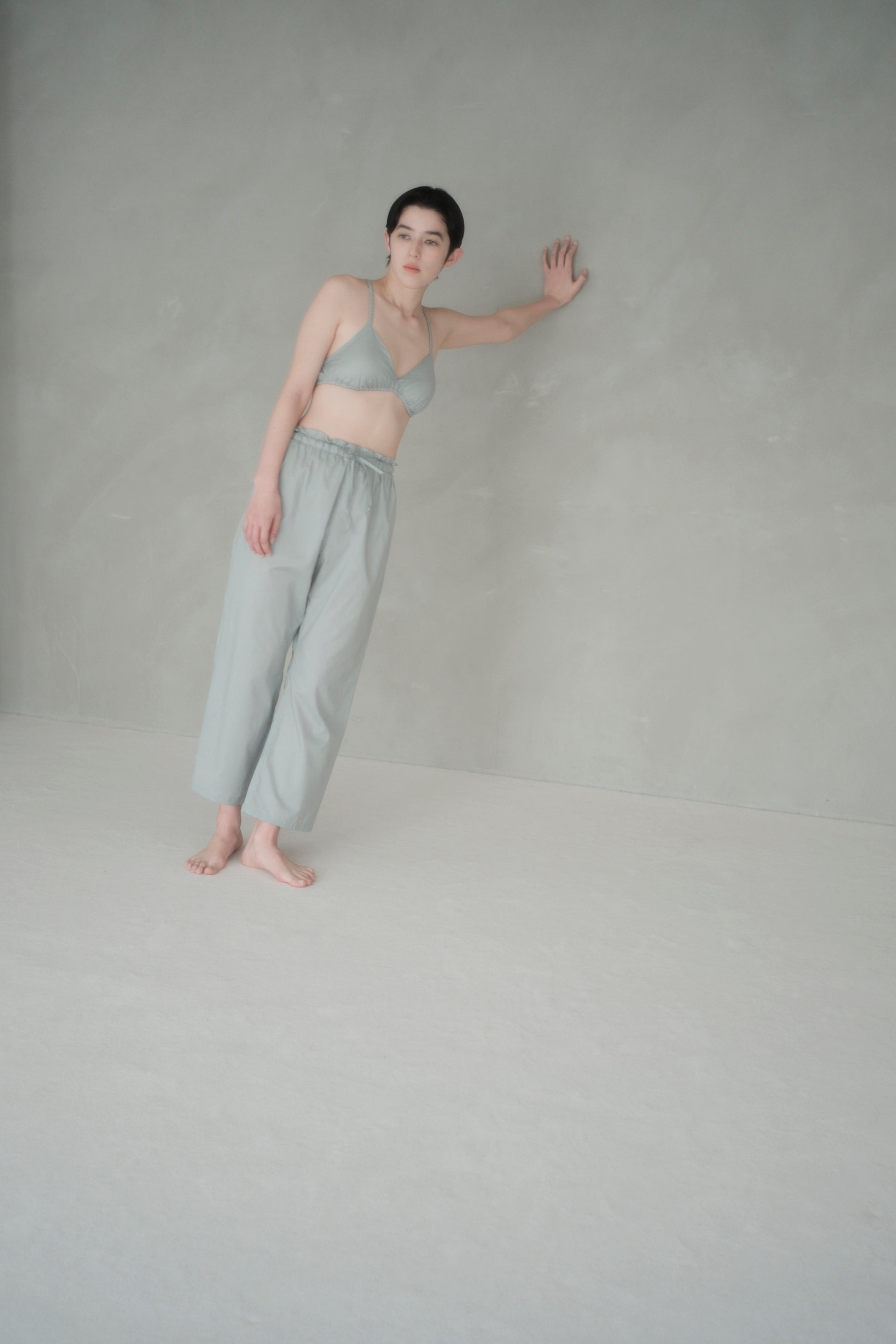 スモーキーな青み、緑みのあるグレーのROOM PANTS。